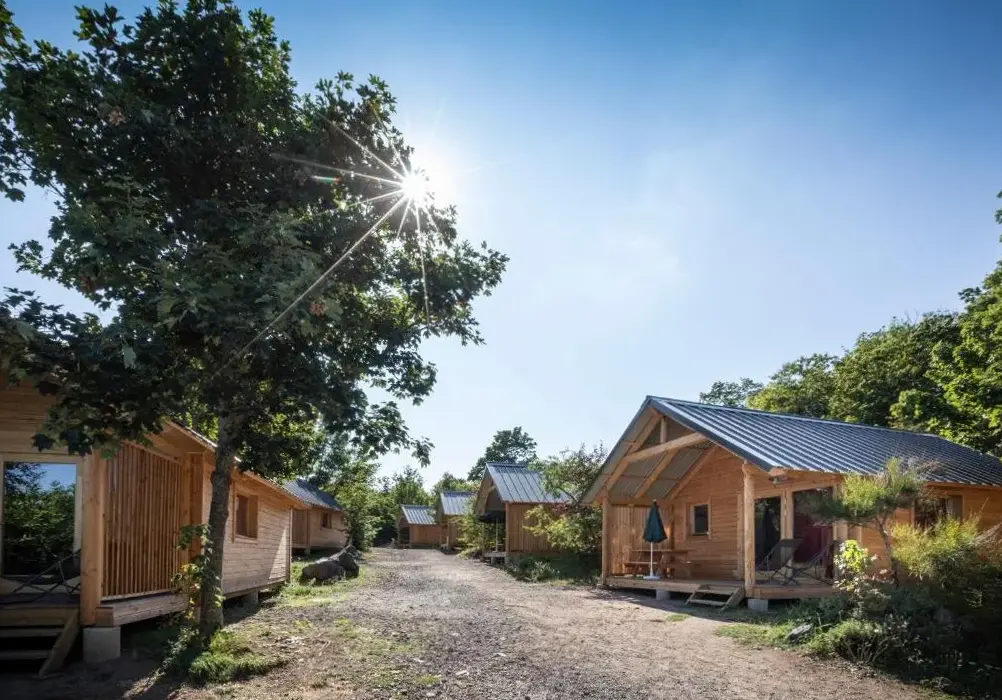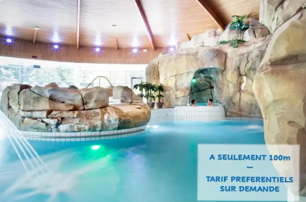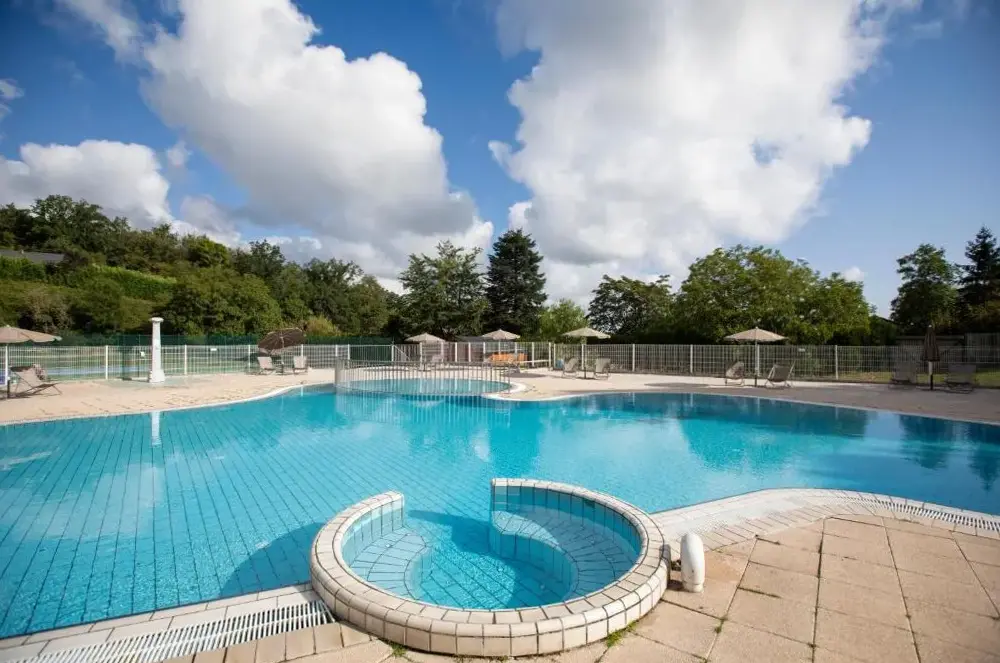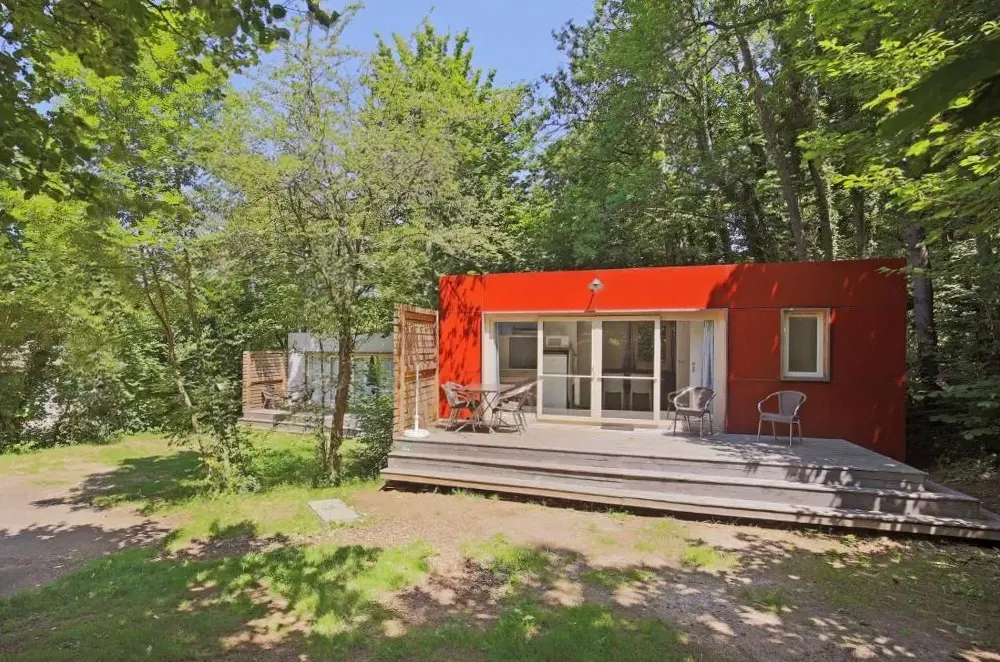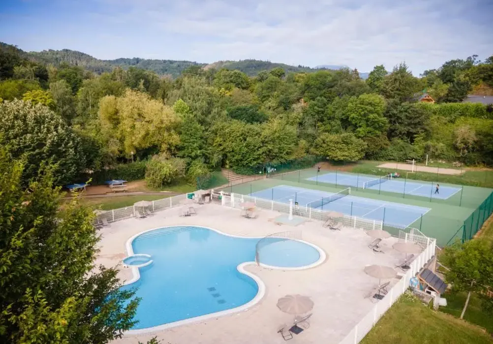Weitere Informationen zu Villa des Thermes - T3Huttopia Royat bietet eine einzigartige Unterkunft mit Außenpool und kostenlosem Parkplatz. Das Mobilhome ist idyllisch in der Nähe von Bäumen gelegen und verfügt über einen separaten Bereich für Aktivitäten.