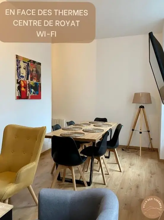 Weitere Informationen zu • Au Cosy Dôme. •Villa des Thermes - T3 ist eine neu renovierte Unterkunft in einem zentral gelegenen Bereich von Royat. Die Wohnung bietet zwei geräumige Schlafzimmer mit bequemen Betten sowie ein modern eingerichtetes Badezimmer. Der Aufenthaltsraum verfügt über einen Flachbild-TV und eine Kochnische mit Geschirrspüler.