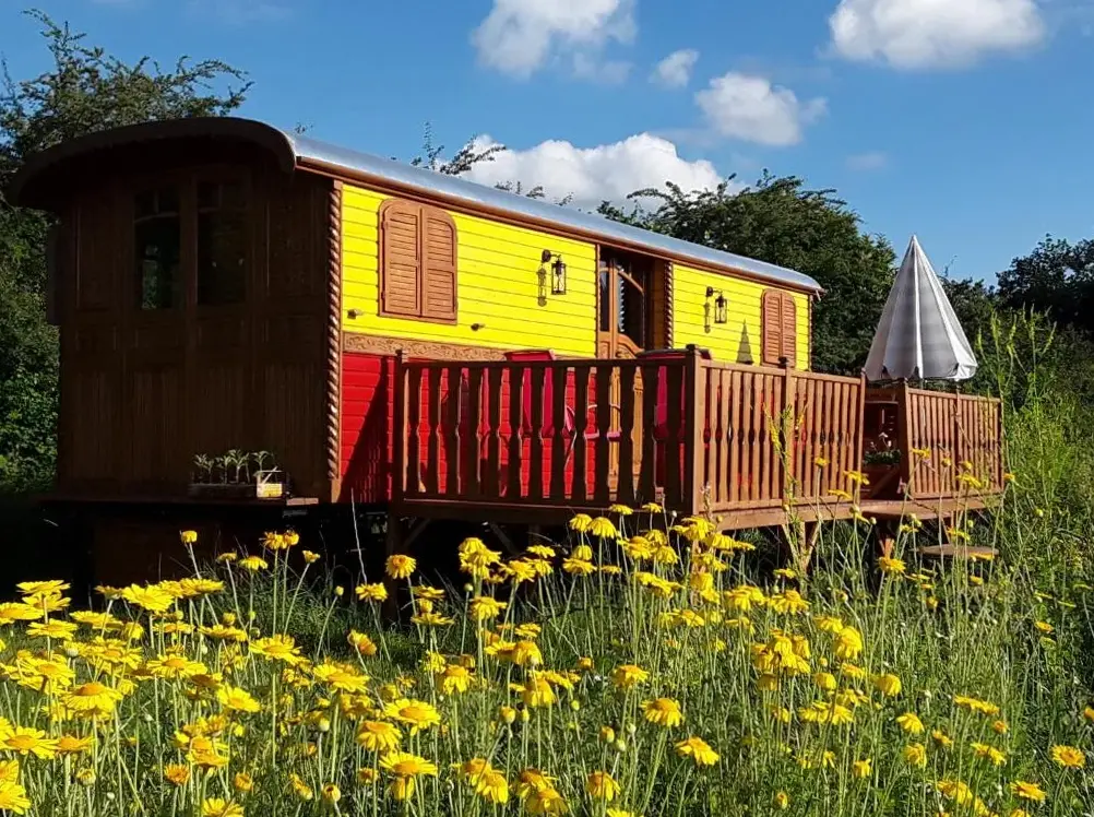 La Roulotte de l'Ami Nature offers a unique and tranquil retreat set in a beautifully maintained garden surrounded by lush greenery and scenic landscapes. This cozy accommodation features a private bathroom, terrace, balcony, and kitchenette, providing comfort and convenience for guests. The unit includes air conditioning and free parking, ensuring a pleasant stay regardless of weather conditions.